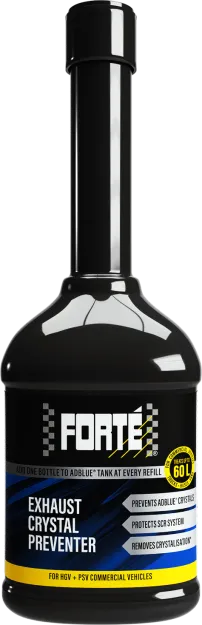 Forté Exhaust Crystal Preventer to skuteczny środek, który zapewnia ochronę i utrzymanie sprawności systemu SCR (Selective Catalytic Reduction) w pojazdach wykorzystujących płyn AdBlue. Jedno opakowanie preparatu jest przeznaczone na maksymalnie 60 litrów AdBlue. Aby zapewnić optymalne funkcjonowanie układu SCR, zaleca się dodawanie Forté Exhaust Crystal Preventer do zbiornika AdBlue przy każdym jego tankowaniu.